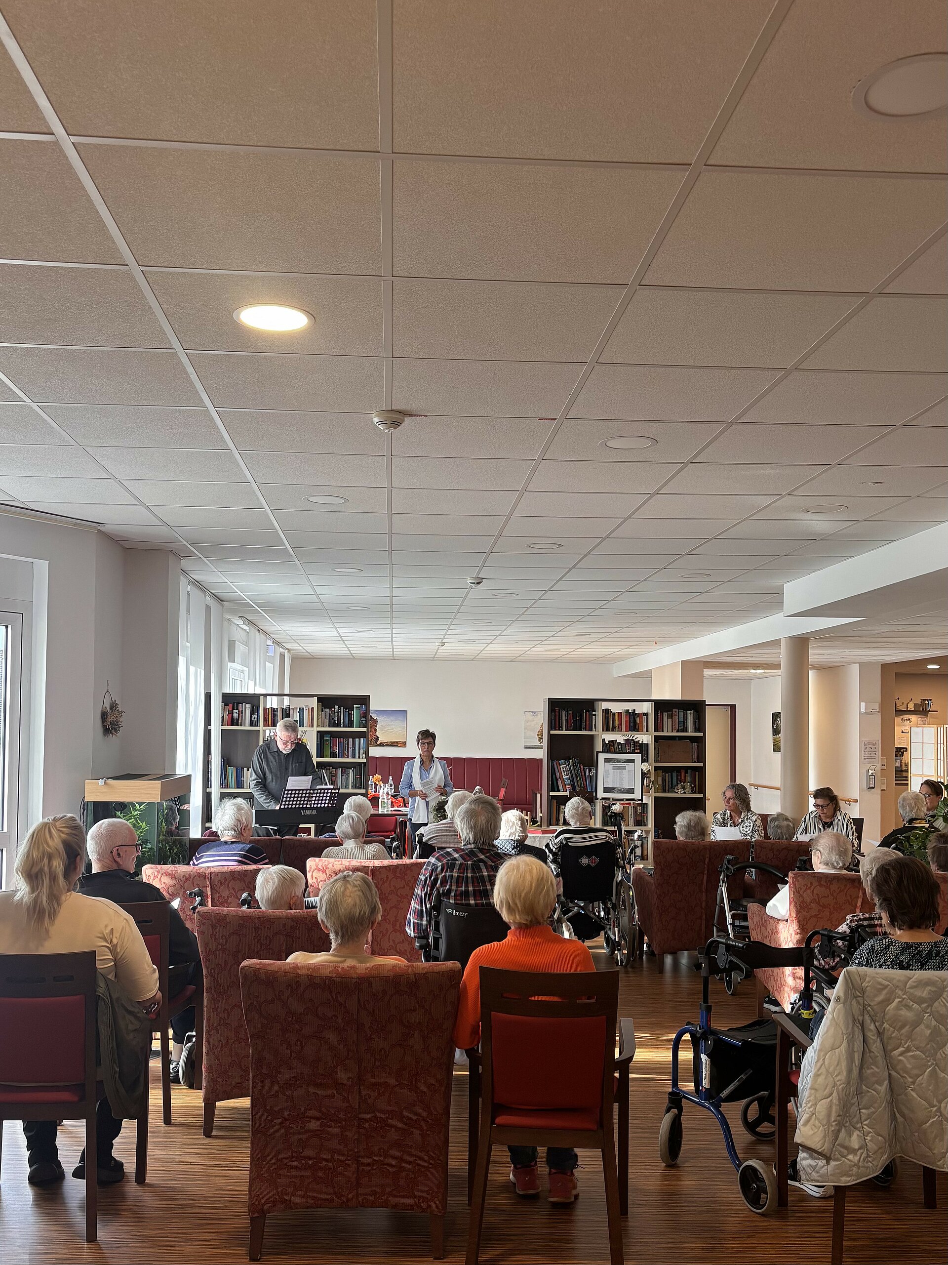 Unter der Leitung von Pastor Paul Schewe kamen Bewohner und Mitarbeitende unseres Hauses zusammen, um in Stille, Gebet und Musik der Verstorbenen zu gedenken. In einer bewegenden Ansprache erinnerte der Pastor daran, dass die Menschen, die hier gelebt haben, mit ihren Geschichten, ihrem Lachen und ihren Spuren in unseren Herzen weiterleben.