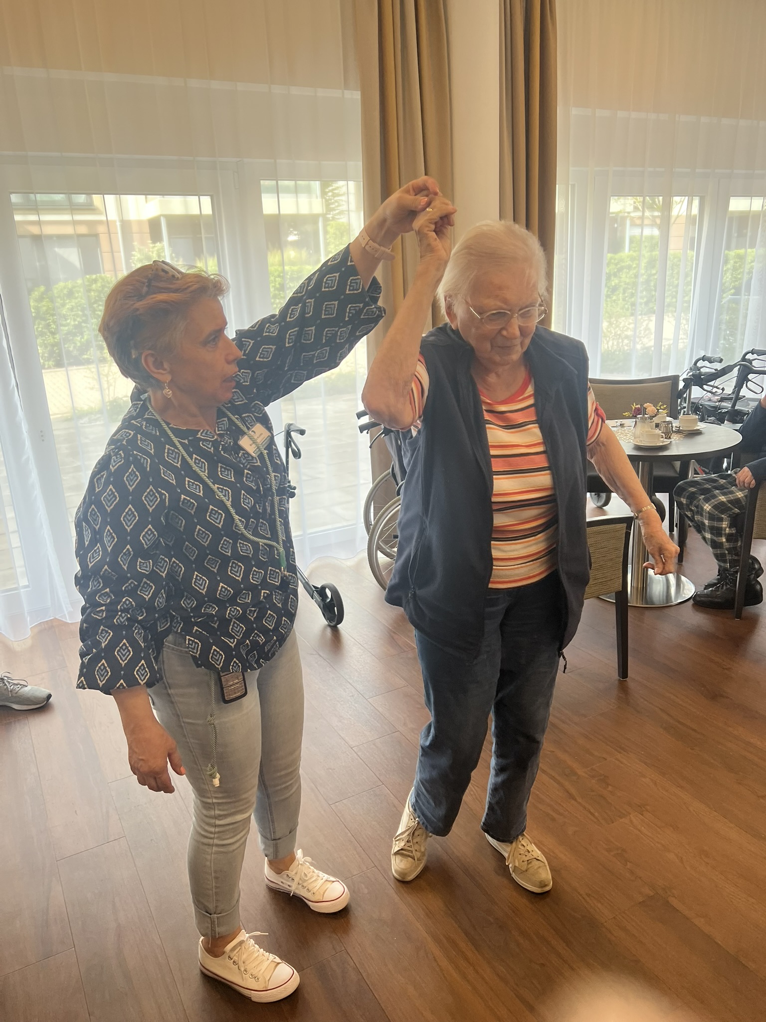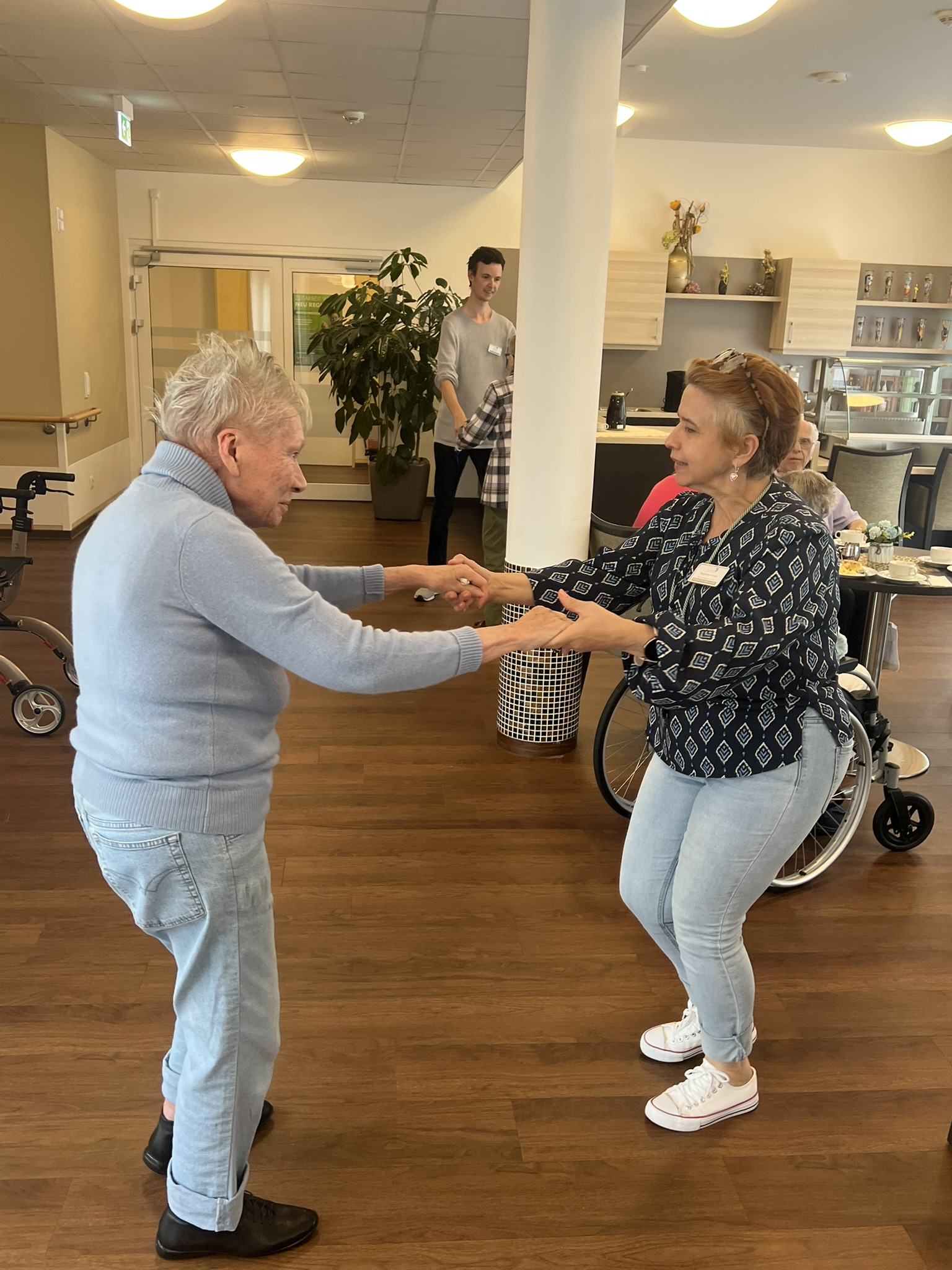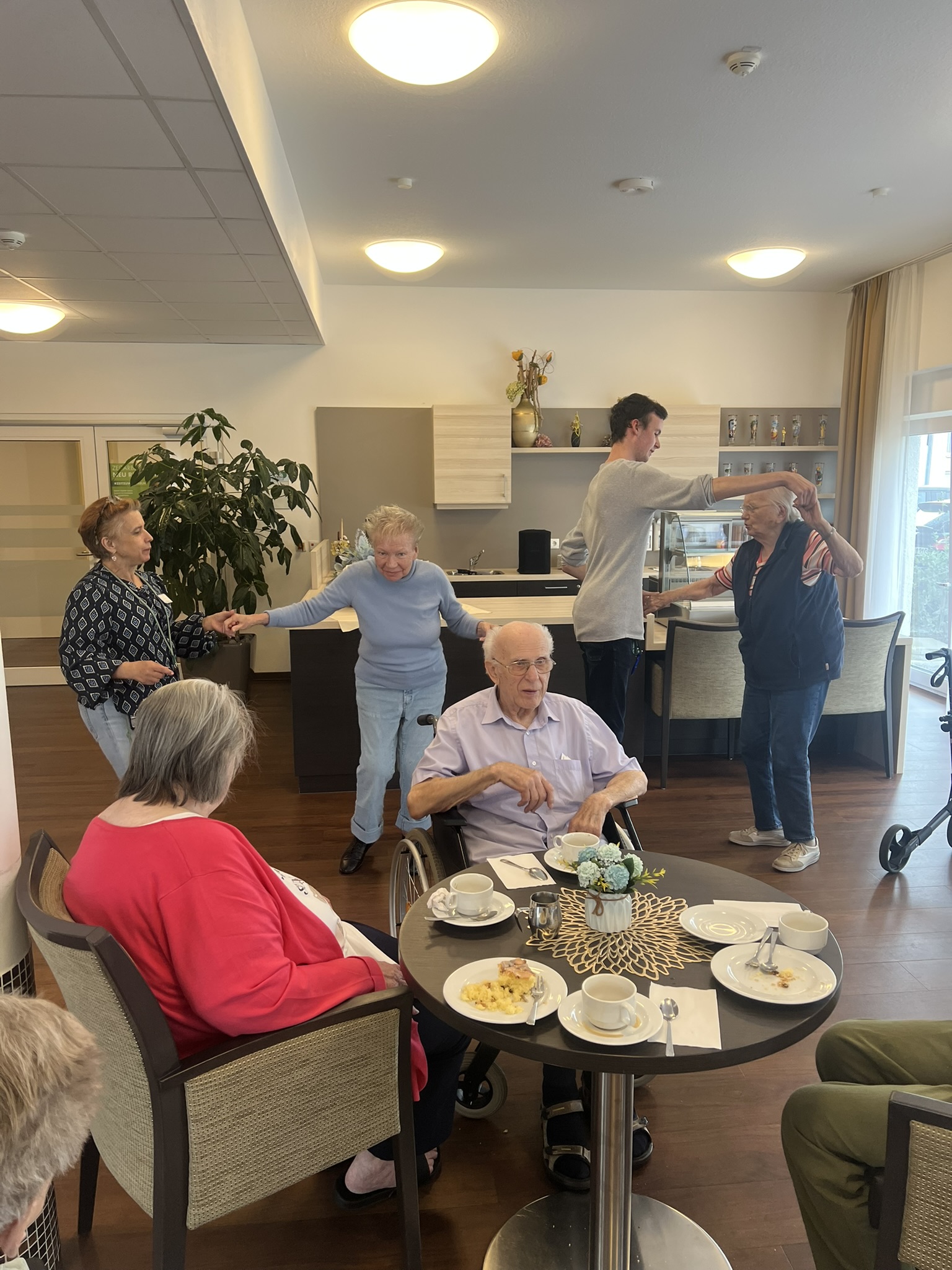 Zum ersten Mal fand in unserer Senioren-Residenz ein fröhlicher Tanztee statt. Bewohern:innen tanzten, sangen, und schunkelten begeistert zu ihren Lieblingsliedern - von Walzer über Schlager bis hin zu modernen Klassikern war alles dabei. Auch die soziale Betreuung und das Pflegeteam hatten viel Freude an der gemeinsamen Feier. Ein rundum gelungener Nachmittag, der nach Wiederholung ruft!
