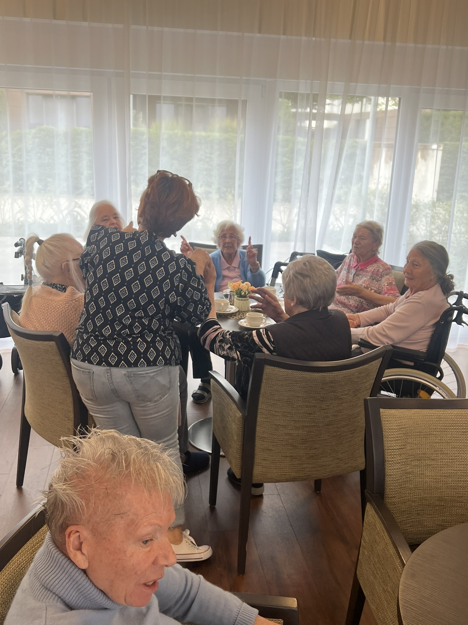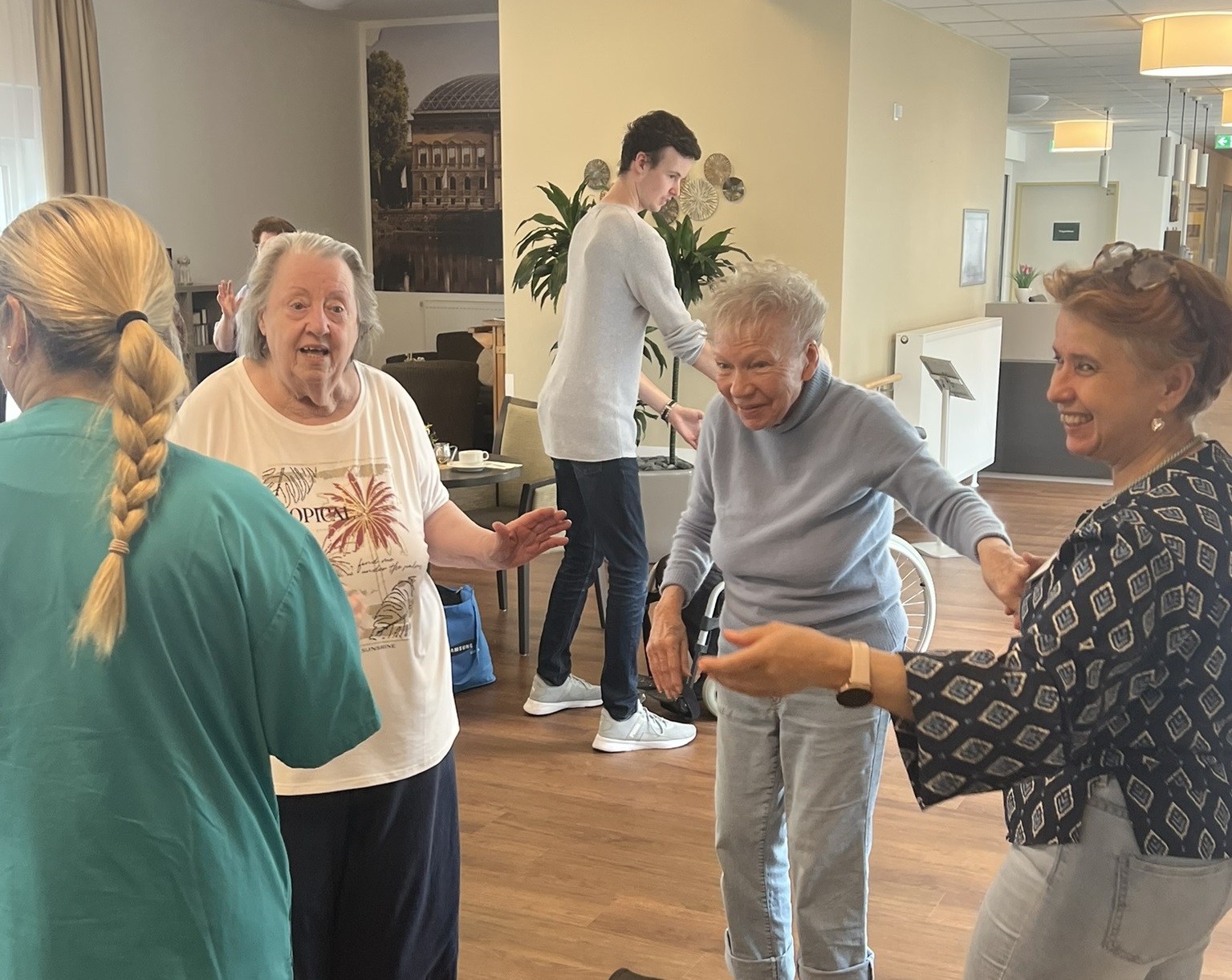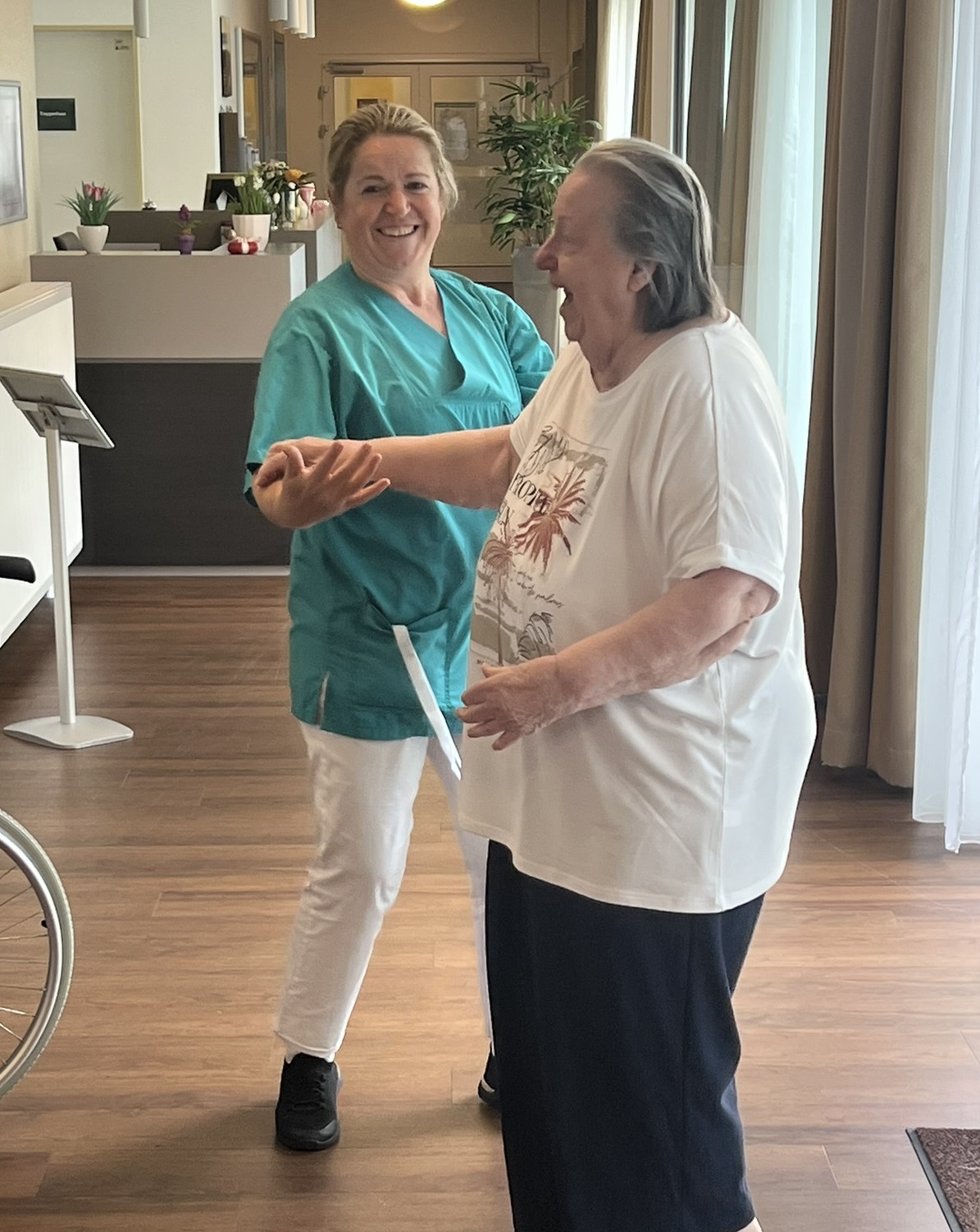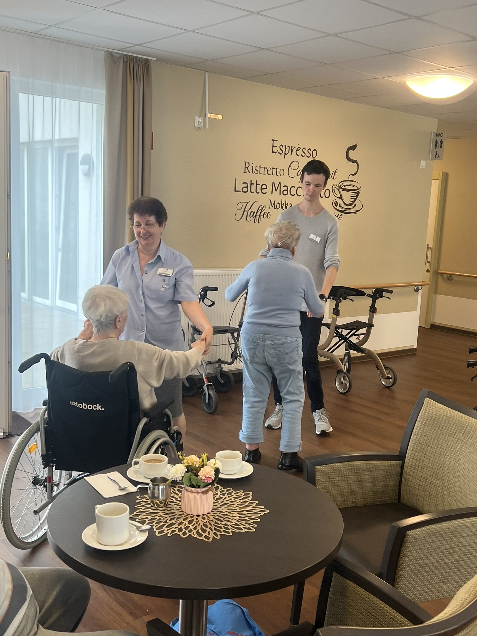 Zum ersten Mal fand in unserer Senioren-Residenz ein fröhlicher Tanztee statt. Bewohern:innen tanzten, sangen, und schunkelten begeistert zu ihren Lieblingsliedern - von Walzer über Schlager bis hin zu modernen Klassikern war alles dabei. Auch die soziale Betreuung und das Pflegeteam hatten viel Freude an der gemeinsamen Feier. Ein rundum gelungener Nachmittag, der nach Wiederholung ruft!