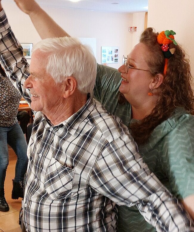 Im Seniorenzentrum haben wir dieses Fest mit Musik und geselligen Beisammensein gefeiert. Es gab selbstgebackenen Speckkuchen, Wein, Bier und alkoholfreie Getränke. Für die gute Stimmung war die Sägerin Sabine Elara zuständig. Sie brachte ihre Tochter mit, mit der sie zusammen einige Songs präsentierte. So kam die richtige Stimmung auf, bei der auch getanzt wurde.