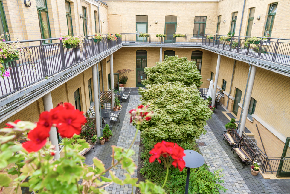 Unsere Residenz liegt nicht weit von der Leipziger City im lebendigen Stadtteil Gohlis und ist genau das Richtige für überzeugte Stadtmenschen. Das Gebäudeensemble strahlt den besonderen Charme behutsam sanierter historischer Bausubstanz aus und bietet höchsten Wohn- und Pflegekomfort. Der gepflegte grüne Innenhof, ein Laubengang und zwei große Dachterrassen laden bei schönem Wetter zum gemütlichen Plausch und zur Entspannung ein.