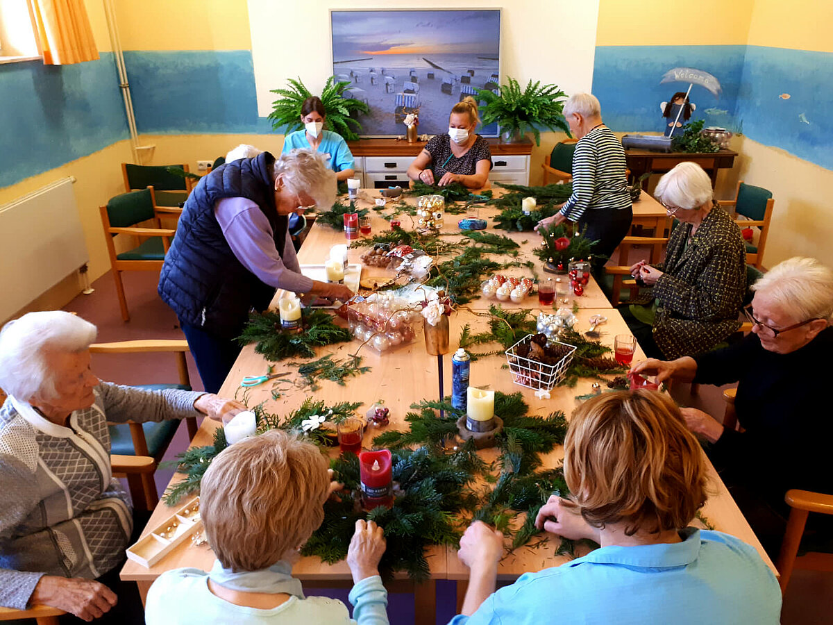 Bewohner basteln zusammen für den Frühlingsmarkt im Pflegeheim "Waldersee" in Lübeck