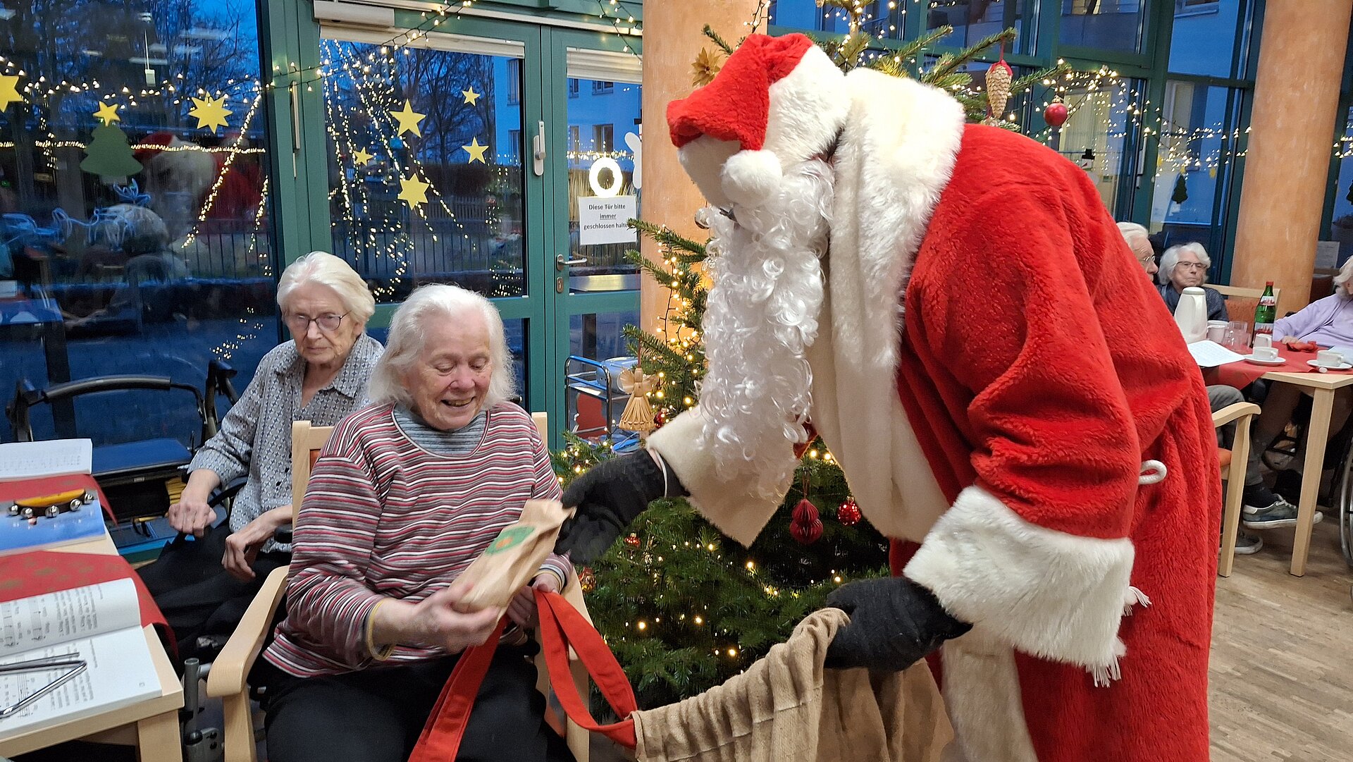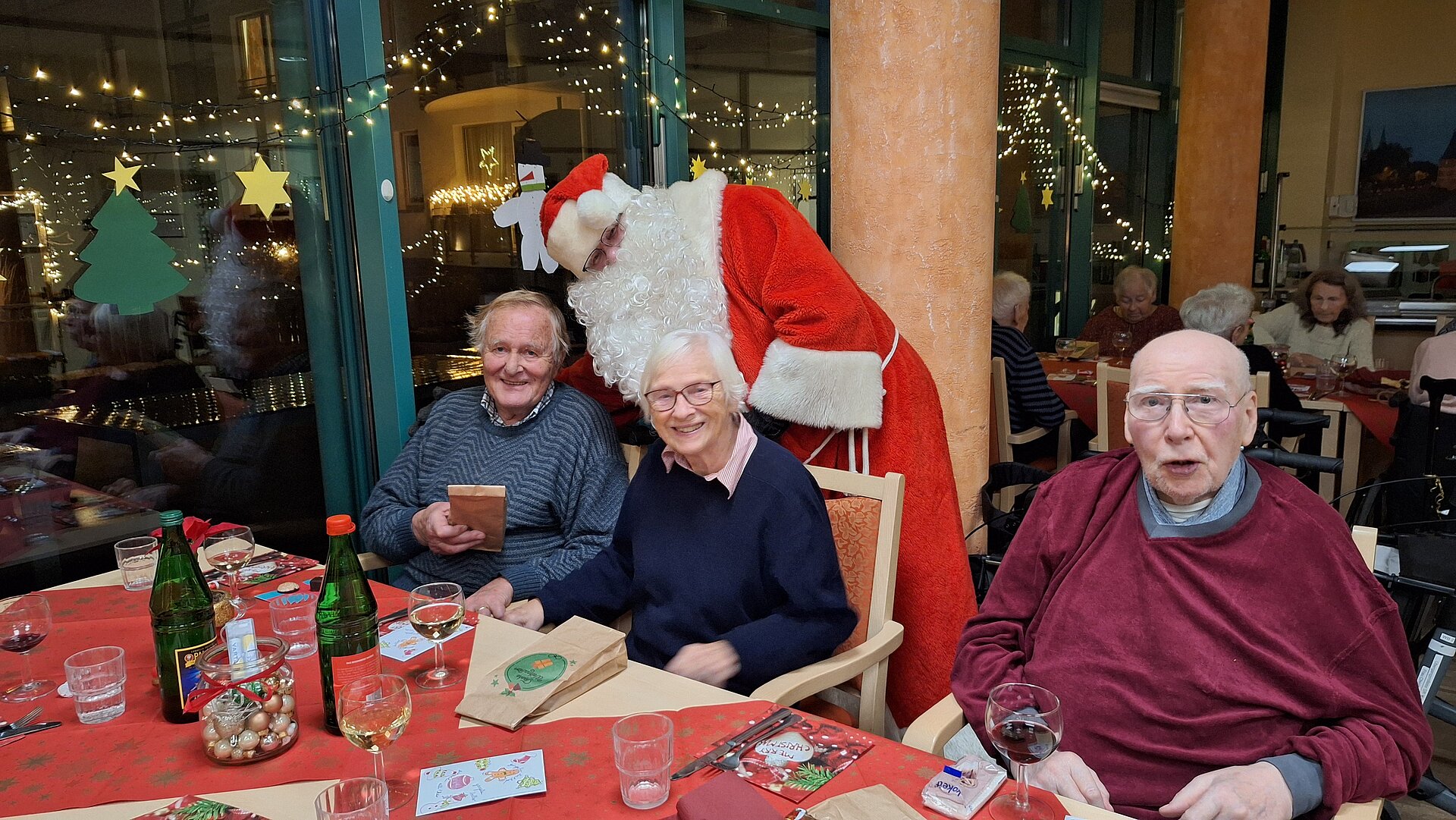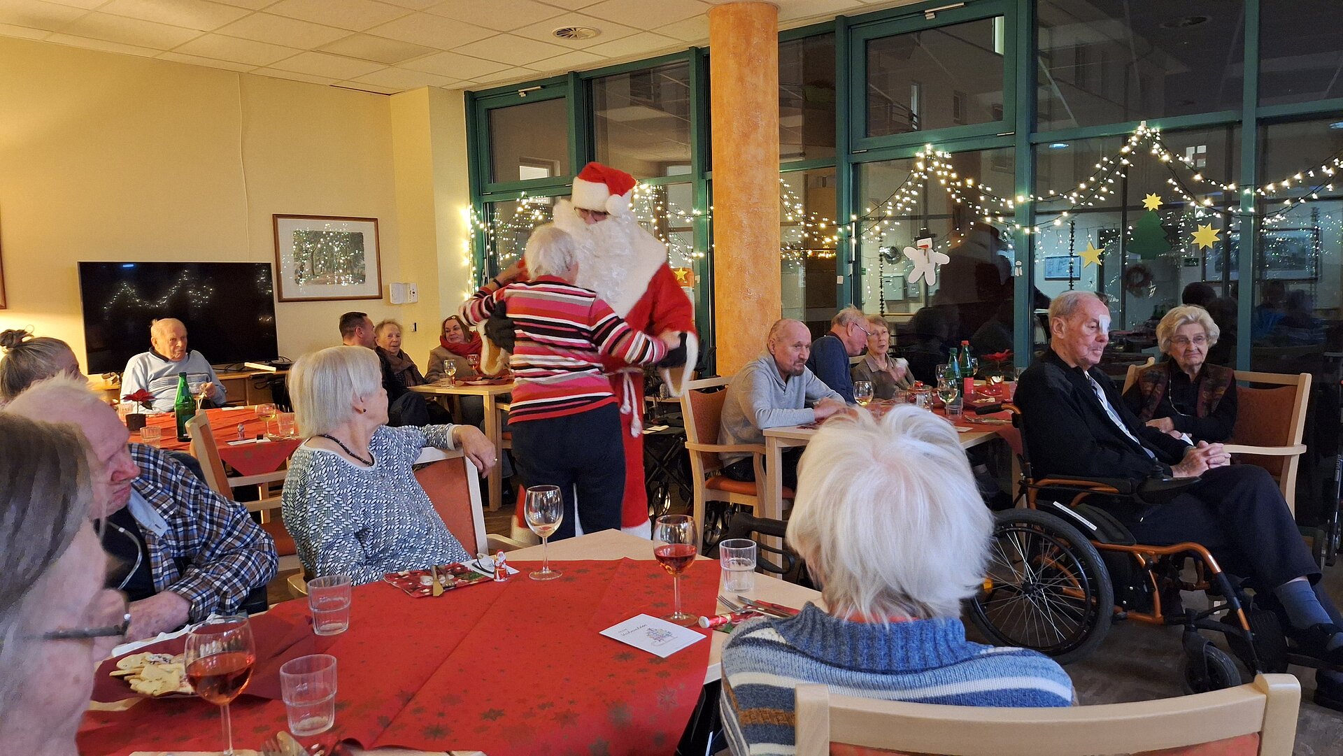Zu den Weihnachtsfeiern kam der Weihnachtsmann zu Besuch, überraschte unsere Bewohner, überreichte Geschenke und brachte viele Gesichter zum Strahlen. Das ist das schöne an Weihnachten. ^_^