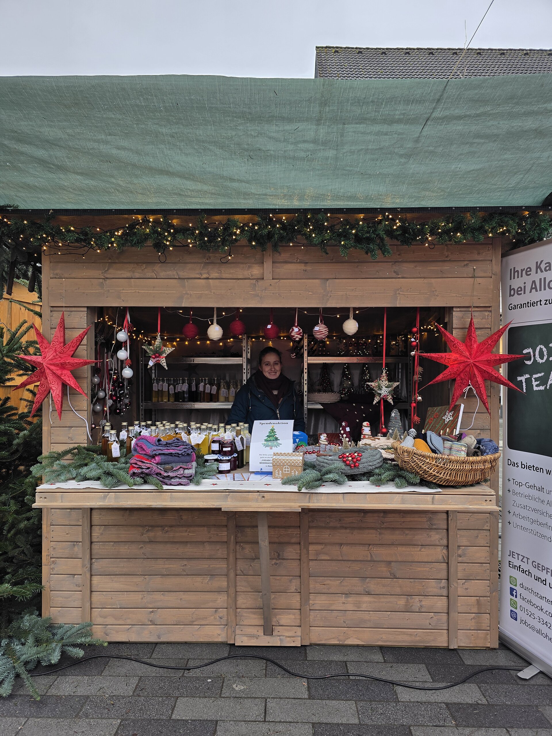 Zwischen Glühweinduft und Reibeplätzchen präsentierte sich das Altenzentrum Lindenhof einmal von einer ganz neuen Seite. Auf dem Mescheder Weihnachtsmarkt präsentierten die Mitarbeiter drei Tage lang selbstgemachte Liköre, kreative Weihnachtsdekoration sowie Handarbeiten unserer Ehrenamtlichen. Hierbei bot sich die Gelegenheit mit zahlreichen Besuchern des Weihnachtsmarktes ins Gespräch zu kommen.
