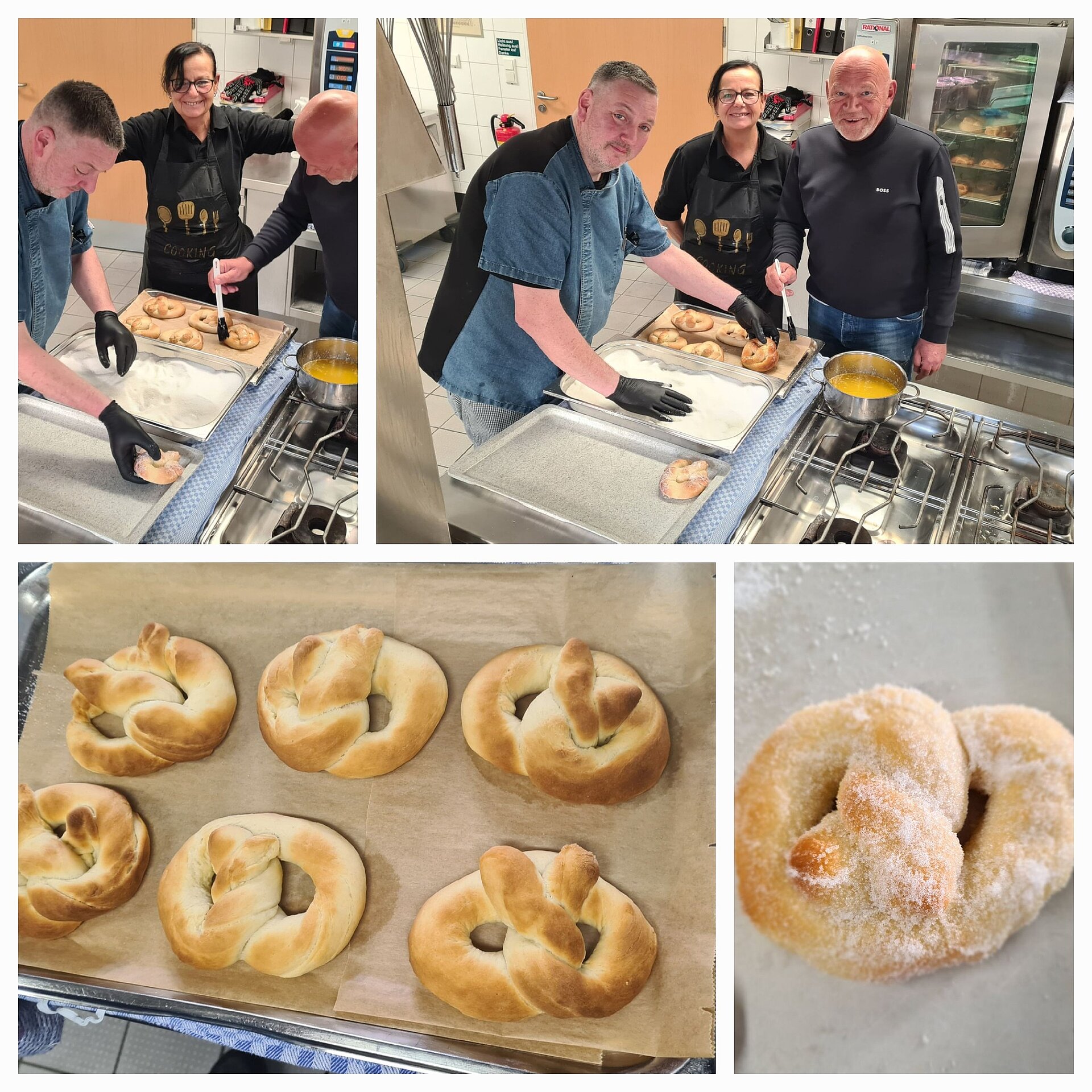Heute duftete es herrlich nach frisch gebackenem Gebäck – Einrichtungsleiter Jörg Becker und Küchenchef Stephan Rück haben gemeinsam Martinsbrezeln gebacken!