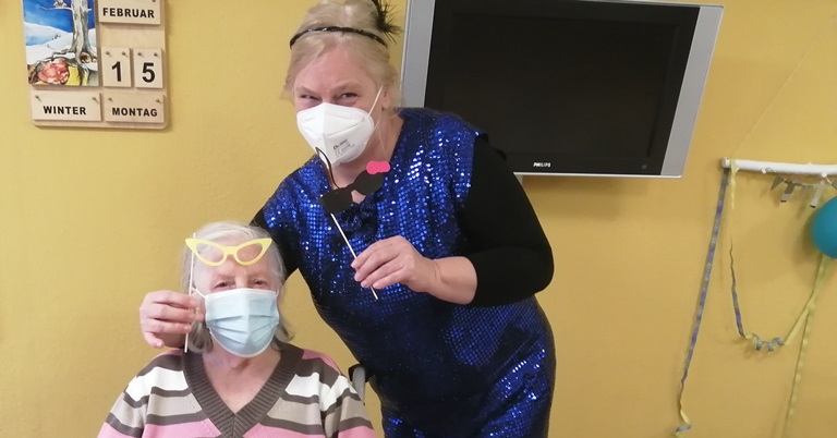 Die Bewohnerinnen und Mitarbeiterinnen im "Haus Am Stadtpark" wurden mit Nelken zum heutigen Weltfrauentag überrascht.