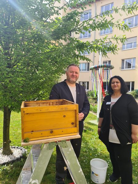 Unser Bewohner Heinrich Käseberg, selbst 50 Jahre Hobby-Imker nutzte die Gelegenheit zum fachlichen Austausch mit seinen Kollegen.