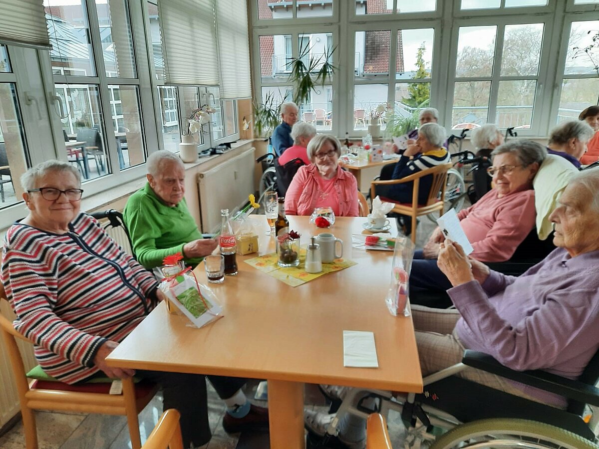 Die Bewohnerinnen und Bewohner der Jungen Pflege genossen die Weihnachtsfeier beim Beisammensein mit leckerem Kuchen und gemeinsamem Singen.
